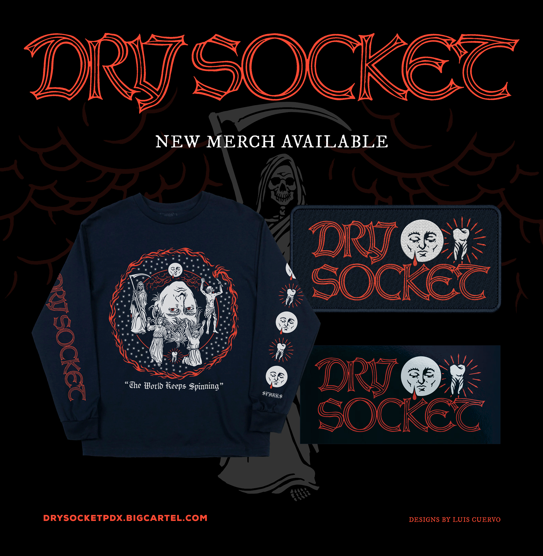 Official merch pack for American Hardcore-Punk band Dry Socket, for their EU Tour 2025 and selected US dates.
